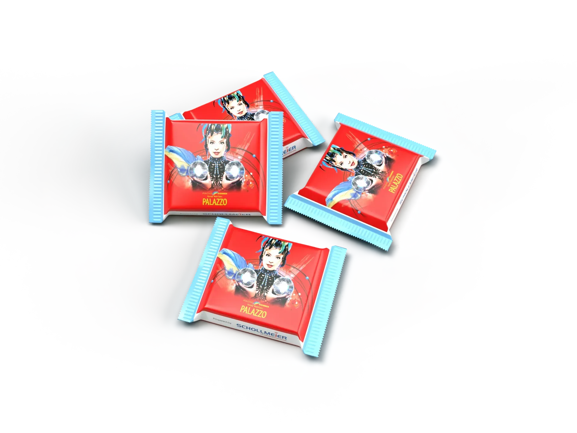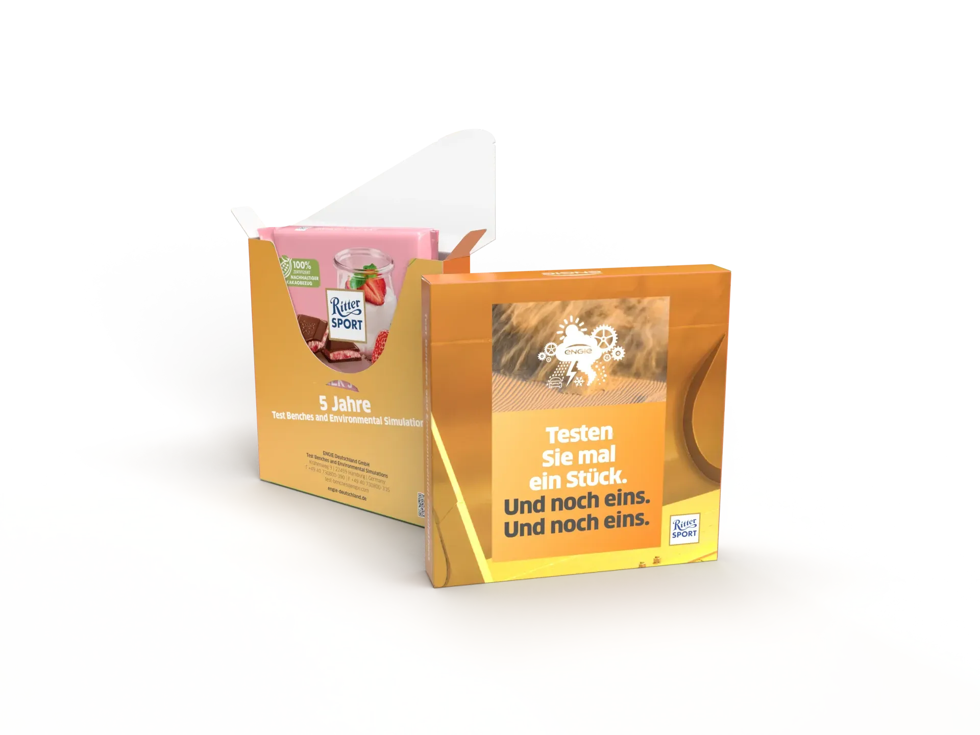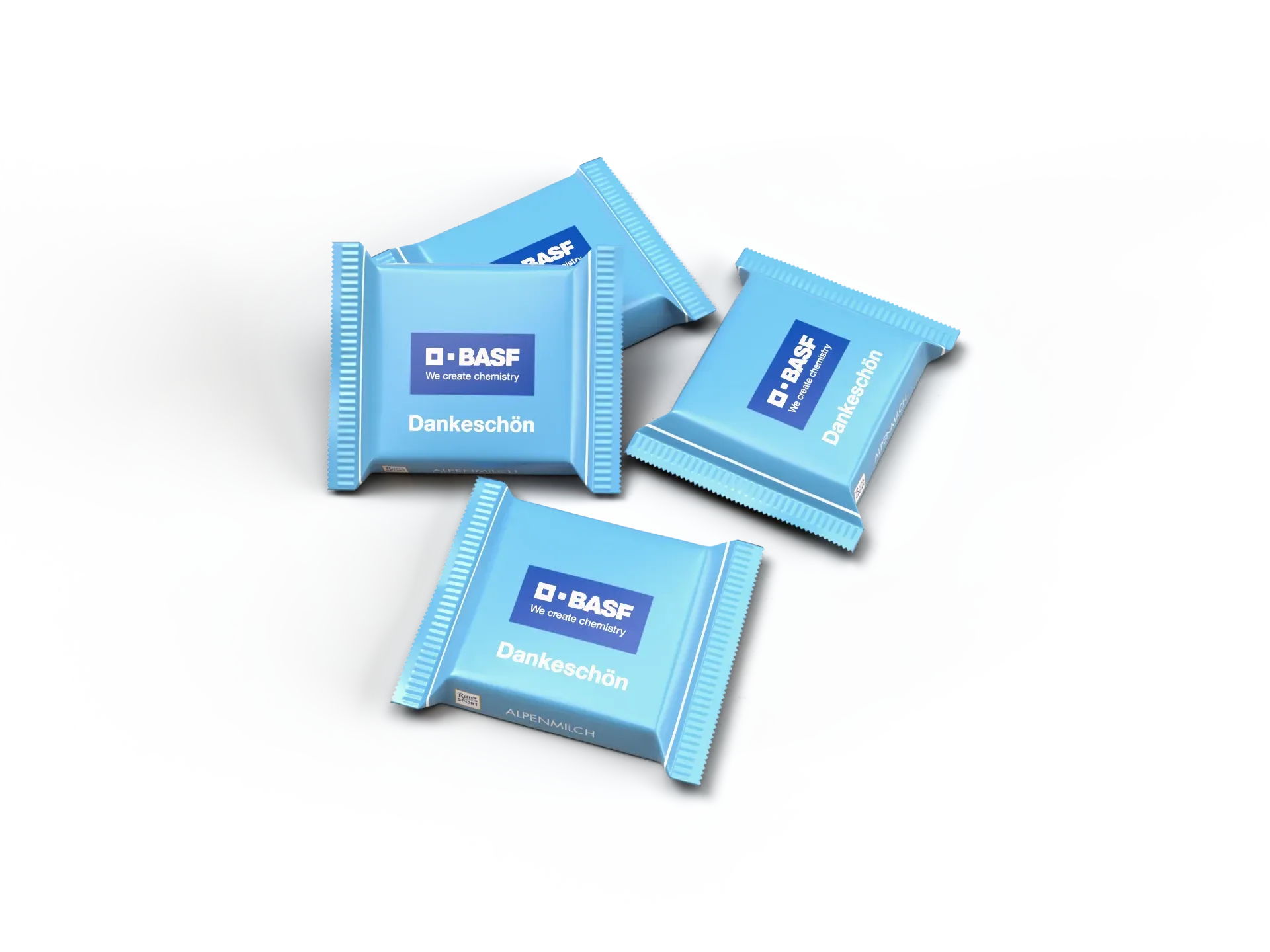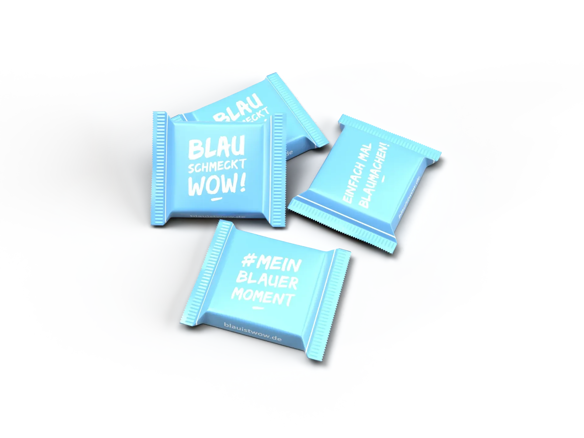 Frei von Ihnen gestaltbar ist sowohl die gesamte Front der Tafel, als auch die beiden Seiten oben und unten. Die sogenannten Flossen links und rechts der Tafel bleiben in der bei Verbrauchern bekannten Sortenfarbe. Die Rückseite der Tafel ist ebenfalls unveränderlich.
