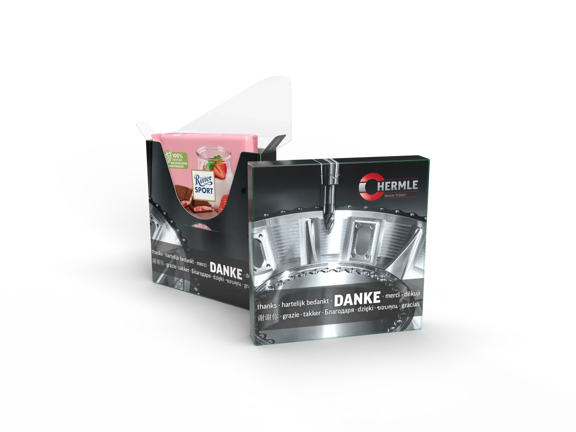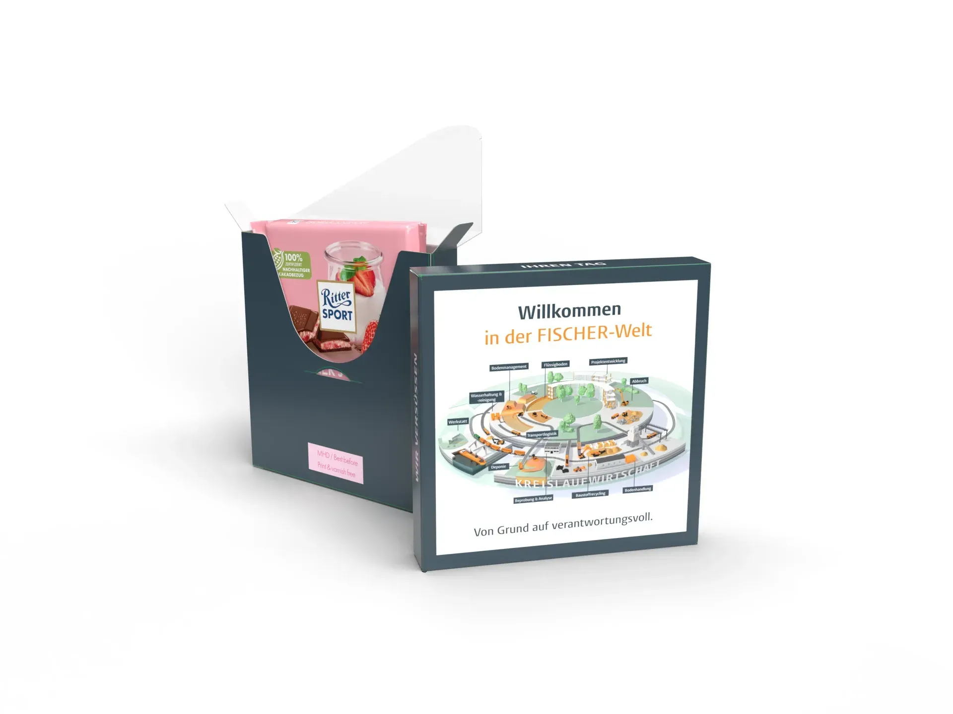 Die jeweilige Sorte, egal ob 100g oder 250g, ist frei aus unserem Sortiment wählbar. Die Karton Umverpackungen sind vollständig individuell nach Ihren Wünschen gestaltbar.